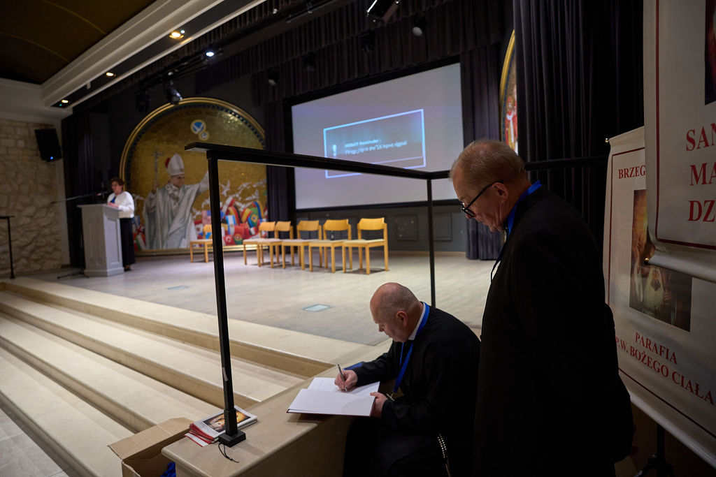 Sobotnie spotkanie rozpoczęło się modlitwą różańcową pod przewodnictwem duszpasterzy diecezjalnych w Sali o. Augustyna Kordeckiego. Obecny był również wikariusz prowincjała redemptorystów, o. Mariusz Mazurkiewicz, który skierował do zebranych słowo powitania. Następnie konferencję wygłosił o. Waldemar Sojka CSsR, przywołując historię Wspólnot, wspominając ich duchowych przewodników oraz założycieli Krakowskiej Wspólnoty Założycielskiej – Janusza i Ewę Eleonorę Nosiadków. Nawiązał również do roli wspólnot i ich rozwoju w Polsce.